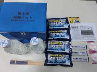 涼しいポロシャツや涼風ファンの導入など熱中症対策に取り組んでいますが、更なる対策として熱中症対策キットを全社員分準備しました!
